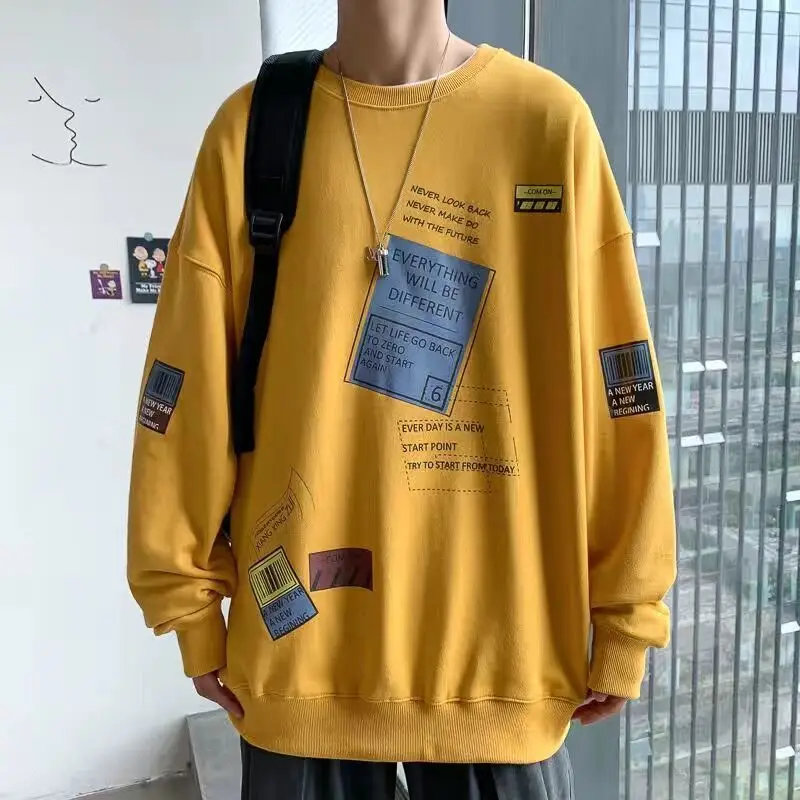 Купить Men Trend Ins Versatile Loose O-Neck Dropped Shoulder Autumn Winter Sweatshirts Preppy Style Letter Label Pattern Long Sleeve за 750рублей