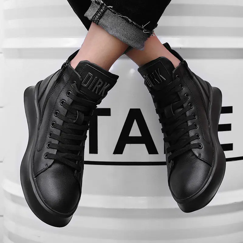 Купить Men's Martin Youth Leather Trendy Ankle Mid-Top Versatile Leather Shoes Autumn and Winter Height Increasing Insole Cowboy Boot за 1500рублей