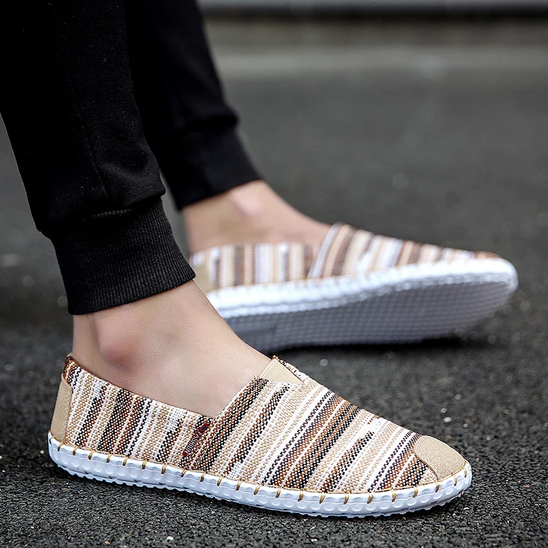 Купить Men's Summer Fashion Canvas Casual Shoe Male Breathable Comfy Soft Canvas Loafers Handsewn Slip-on Leisure Driving Cloth Shoes за 1050рублей