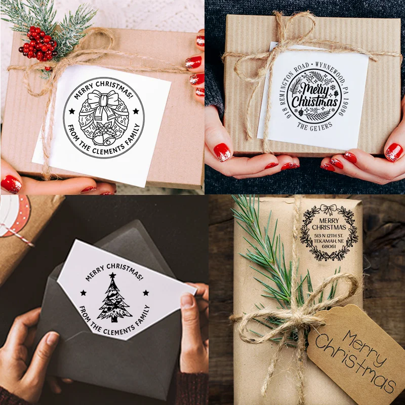 Купить Merry Christmas and Xmas Tree Self inking Stamp DIY Customized Photosensitive ink Stamp Personalized Custom Stamp Rubber за 500рублей
