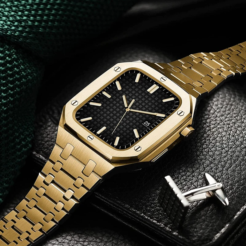 Купить Metal Modification Kit Strap+Case For Apple Watch Band 45mm 44mm Retrofit Bracelet Wristband Correa For iWatch 8 7 6 5 4 SE Band за 5550рублей