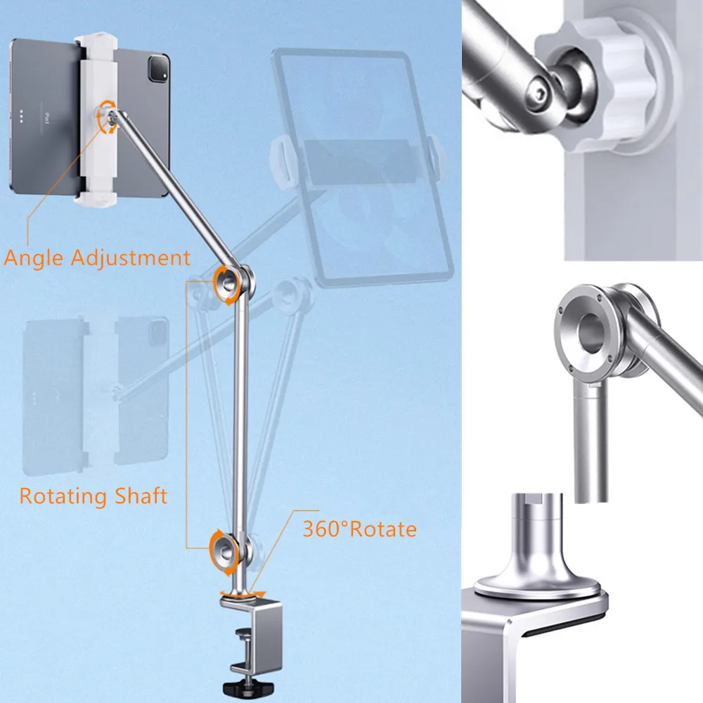 Купить Metal Tablet Stand Holder for Desk 360° Rotating Foldable Lazy Arm Tablet Mount for iPad Air Pro Mini 4-13 inch Tablet Cellphone за 1650рублей