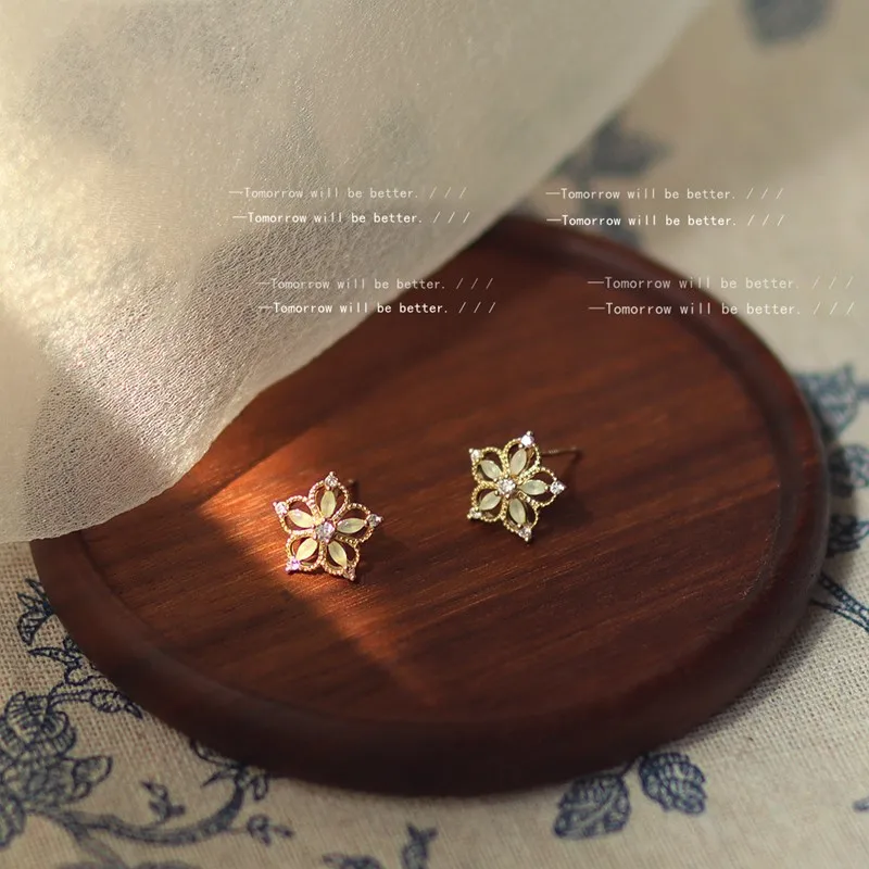 Купить Micro-inlaid Zircon Elegant Small Flower Earrings 925 Silver Needle Plated 14K Simple Temperament Creative Gentle Earrings Women за 200рублей