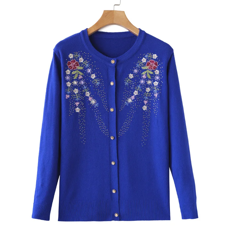 Купить Middle Aged Mother's Temperament Cardigan Clothes Women Spring Autumn Knit Sweaters Print Grandma Long Sleeve Sweater Coat за 600рублей