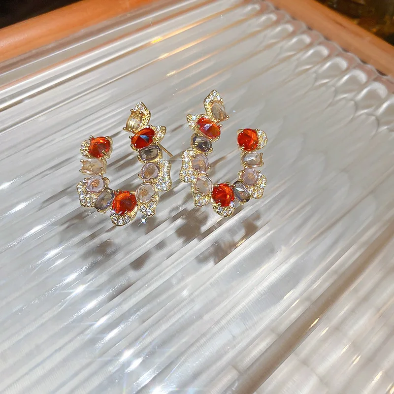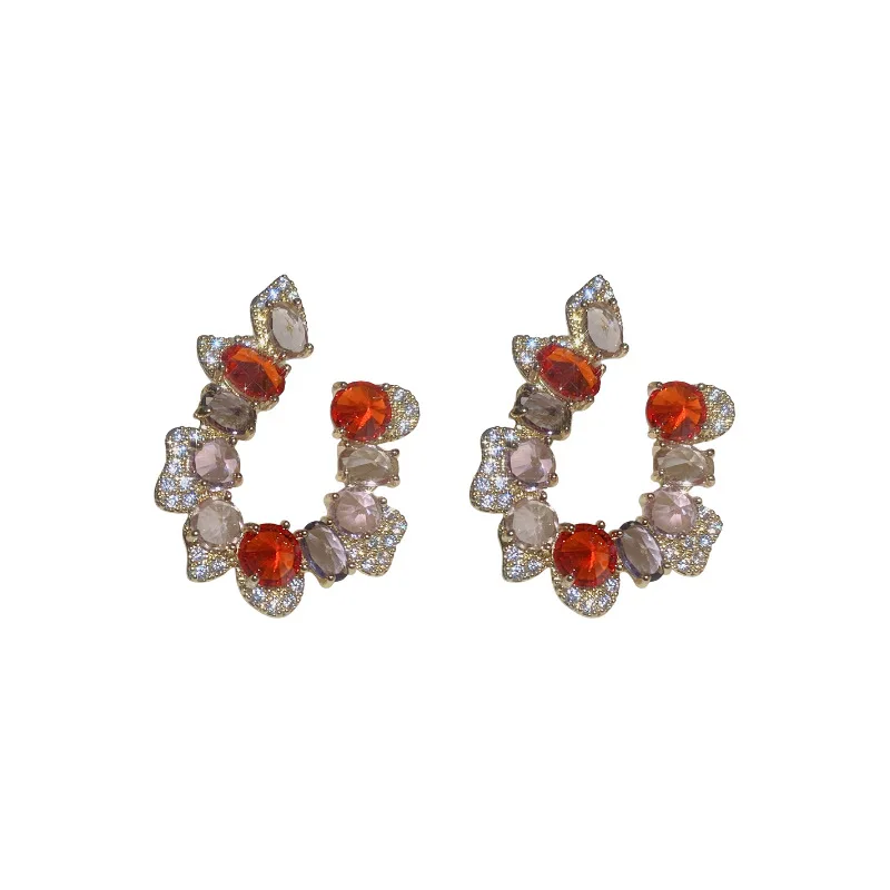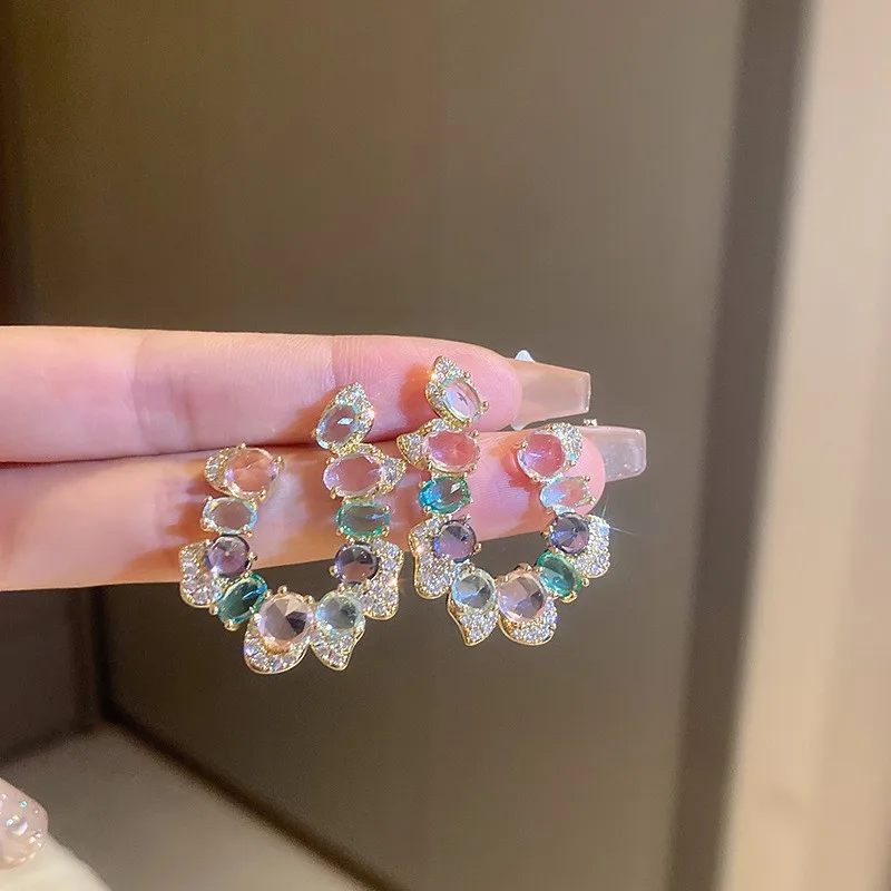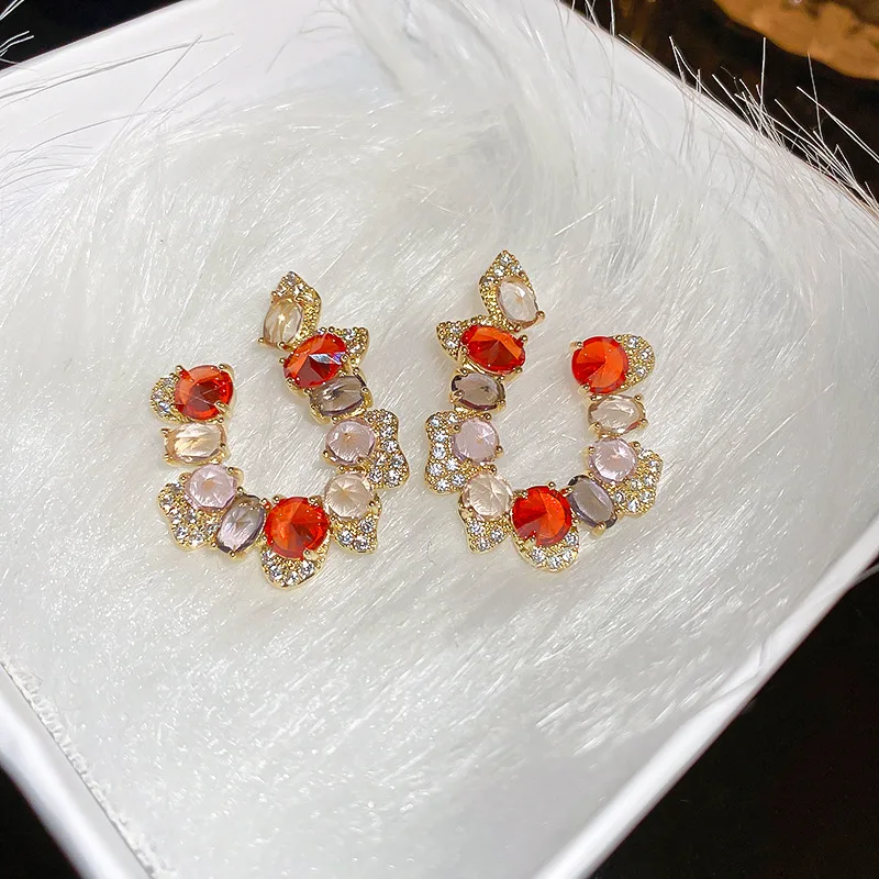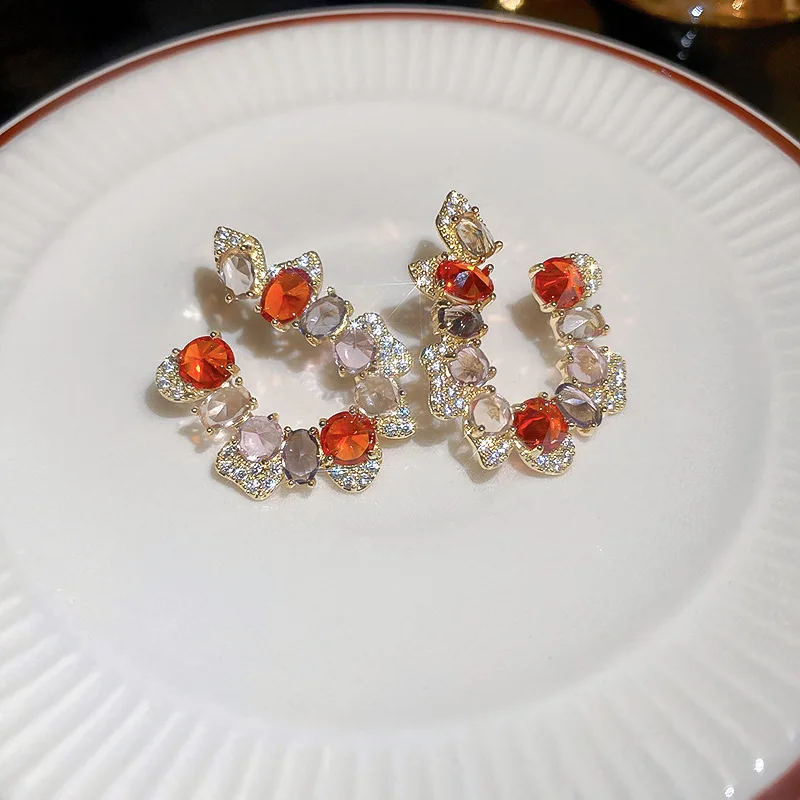 Купить Minar Luxury Shiny Full Rhinestone Cz Zircon Stud Earrings for Women Irregular C Shape Geometric Crystal Earring Accessories за 200рублей
