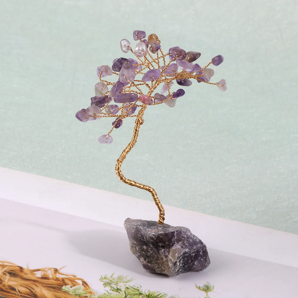 Купить Mini Healing Natural Stone Pink Crystal Quartz Citrine Rich Tree of Life Wish Minerale Room Home Decoration Lucky Christmas Gift за 200рублей