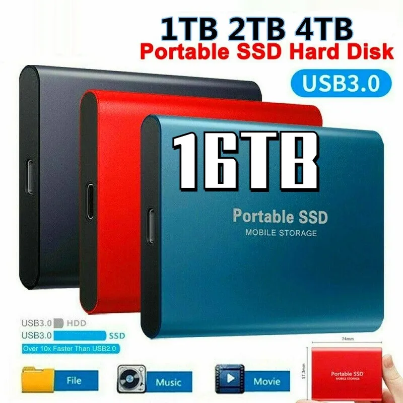 Купить Mobile Solid State Portable SSD High-speed 4TB/8TB/16TB High-capacity USB3.0 Type-C To USB Interface Mobile Hard Drive External за 800рублей