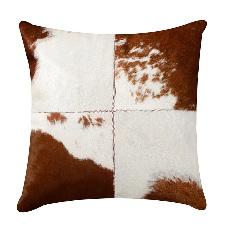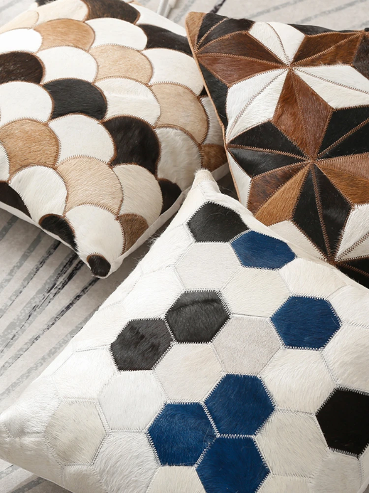 Купить Modern Light Luxury Style Fur Cowhide Pillow Geometric Pattern Stitching Bedroom Bedside Sofa Deco Cushion for Living Room за 3150рублей