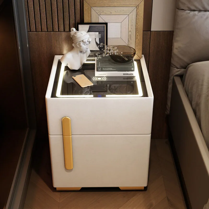 Купить Modern Light Nightstand Drawers Led Usb Nordic Charging Low Small Bedside Table Smart Bedroom Makeup Mesitas De Noche Furniture за 24300рублей
