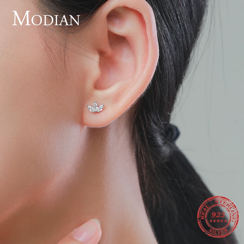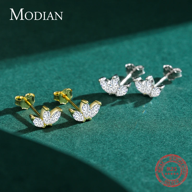 Купить Modian Dazzling Crown Clear CZ Ear Studs 100% 925 Sterling Silver Elegant Tiny Fashion Stud Earrings For Women Gold Jewelry за 250рублей