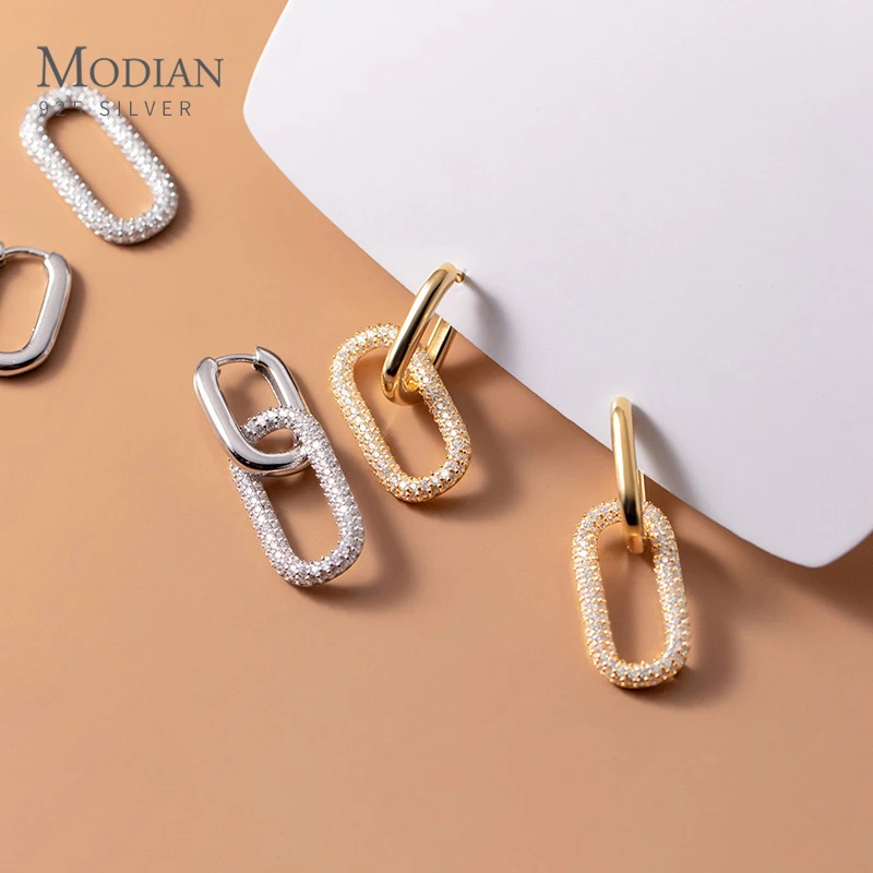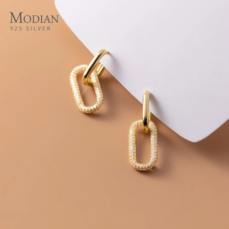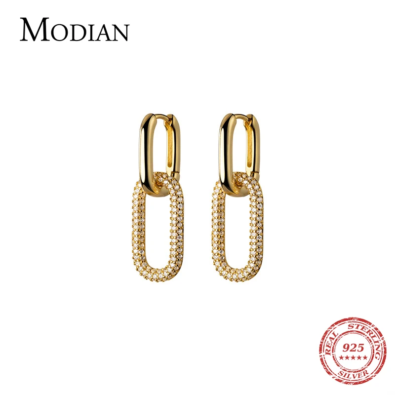 Купить Modian Exquisite luxury Gold Color Earring Real 925 Sterling Silver Double Layer Clear CZ Hoop Earrings For Women Jewelry Brinco за 1100рублей