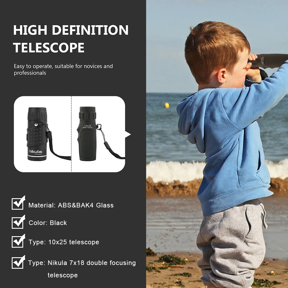 Купить Monocular Telescope 7X18 Fully Coated Optics BAK4 Prisms Mini Monocular With Night Vision For Outdoor Hunting Camping за 350рублей