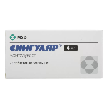 Монтелукаст, таблетки жевательные 4 мг как профилактика астмы у пациентов в возрасте от 2 до 5 лет, у которых основным компонентом астмы является бронхоспазм, вызванный физической нагрузкой .