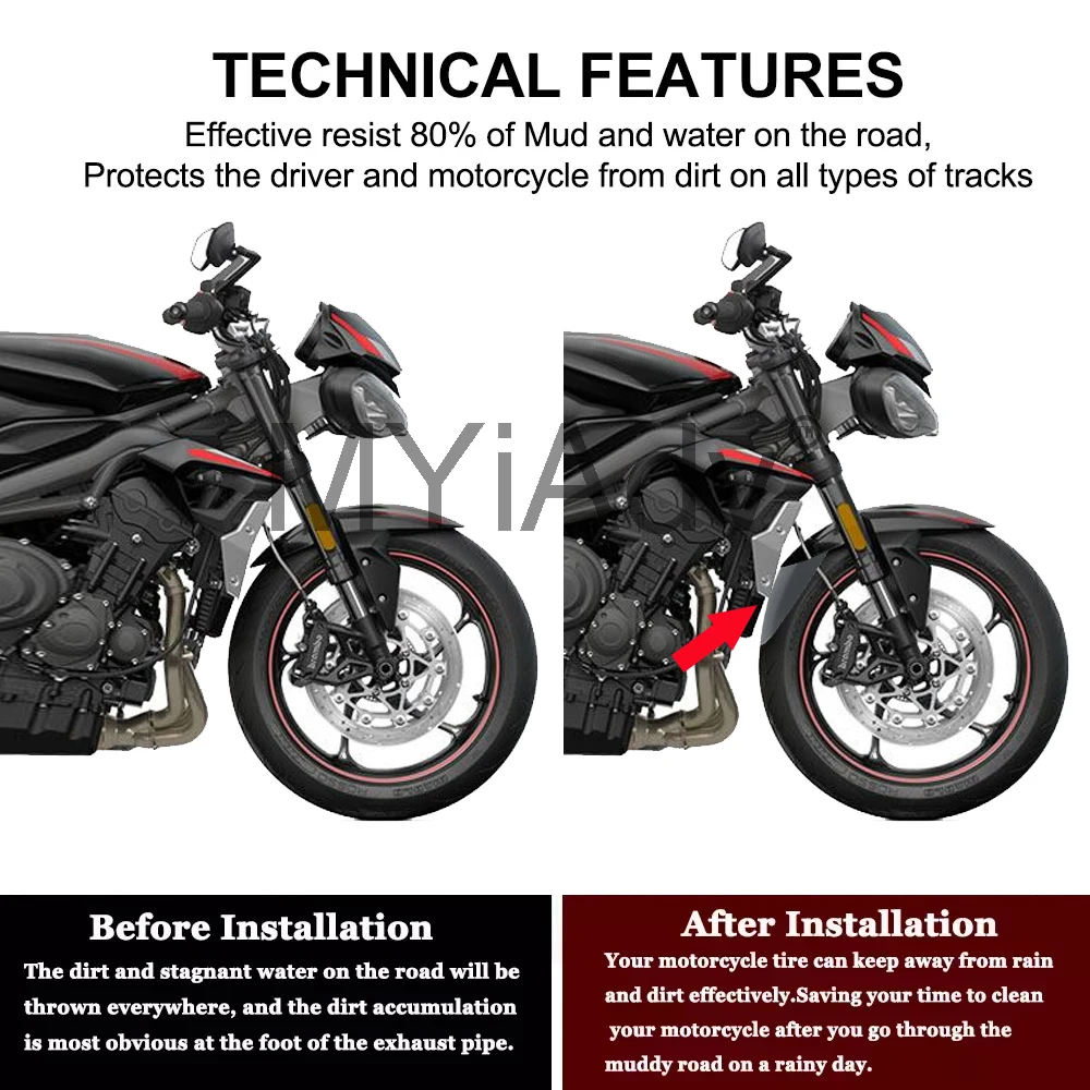 Купить Motorcycle Front Wheel Fender Extender For Street Triple 765R 765S 765RS 765 R/S/RS 2017-2021 Mudguard Hugger Extension Cover за 850рублей
