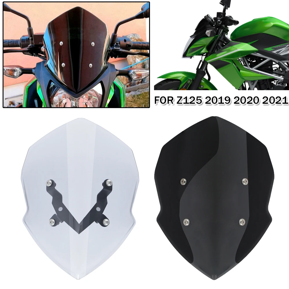 Купить Motorcycle Windscreen For Kawasaki Z 125 Z125 2019 2020 2021 ABS Sport Windshield Airflow Wind Deflector With Mounting Bracket за 1450рублей