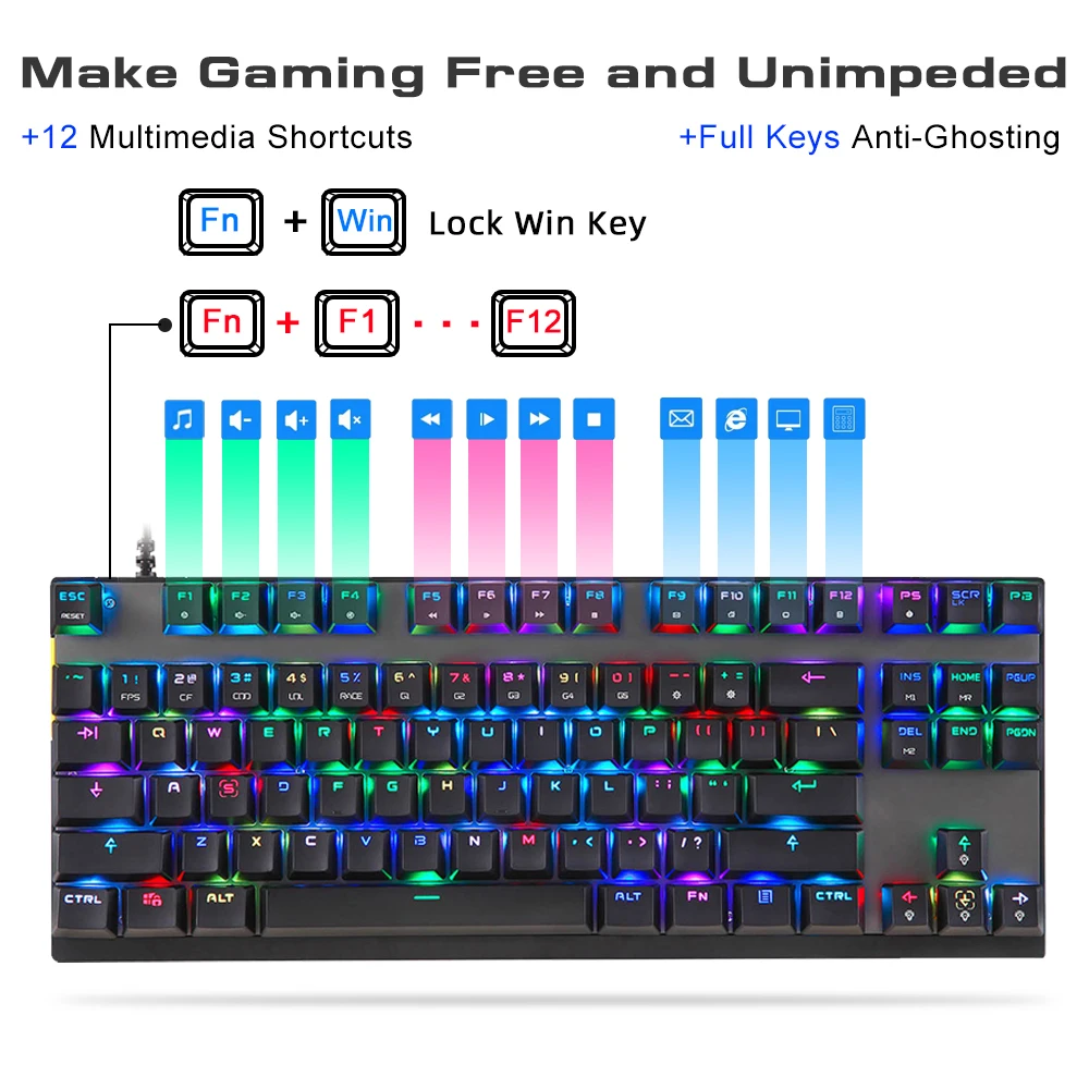 Купить Motospeed Mechanical Gaming Keyboard 87 Key Wired Red Blue Switch RGB Backlit Anti-Ghosting For PC Computer Russian Hebrew за 2300рублей