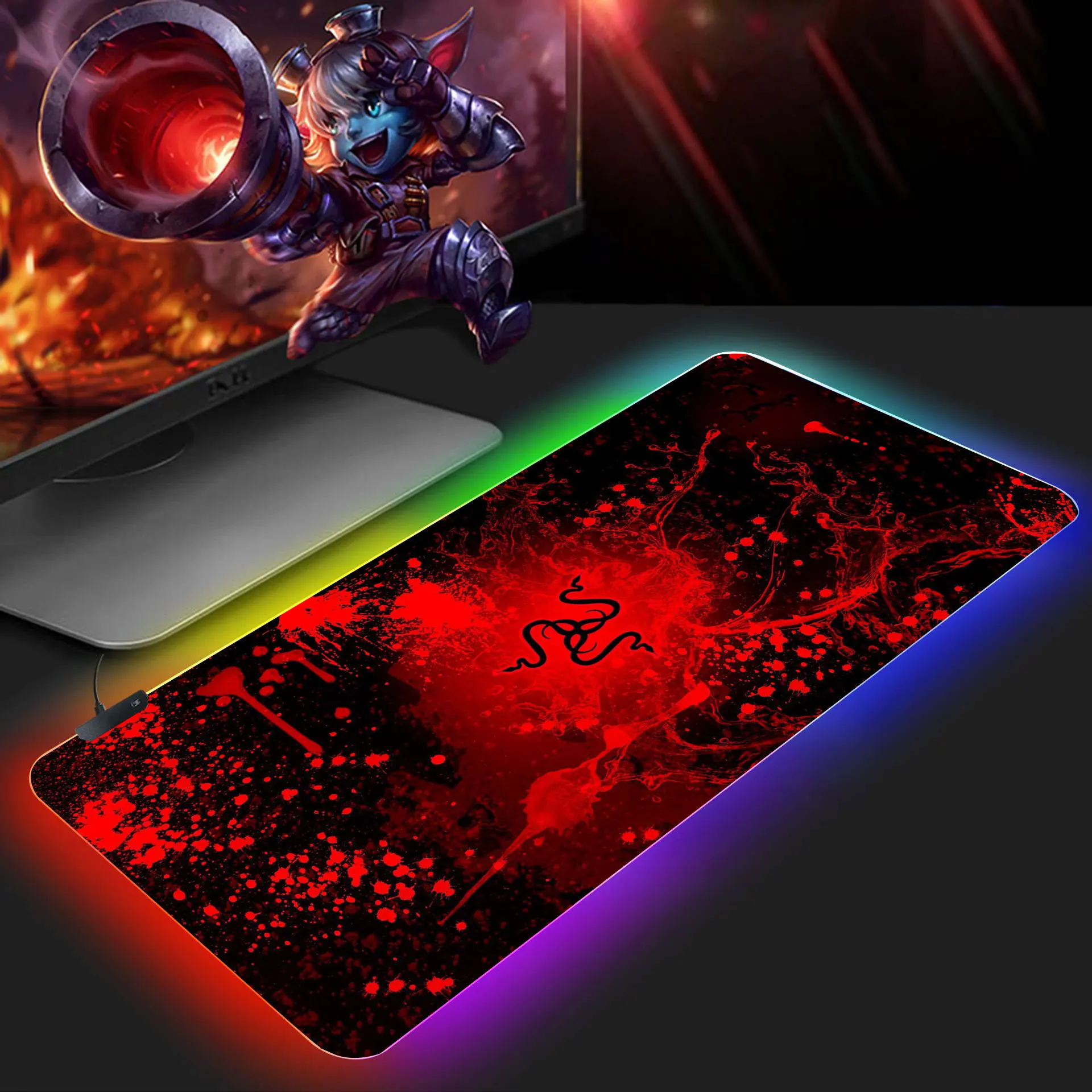 Купить Mouse pad RGB Razer Gaming Accessories Computer Large 900x400 Mousepad Gamer Rubber Carpet With Backlit keyboard mouse pad gift. за 650рублей