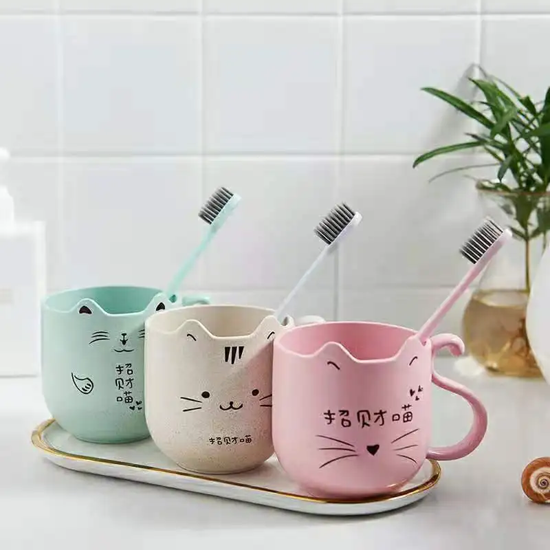 Купить Mouthwash Cup Cat Pattern Home Children Cartoon Cute Creative Wheat Straw Material Toilet Wash Toothbrush Anti-slip Drop-proof за 200рублей