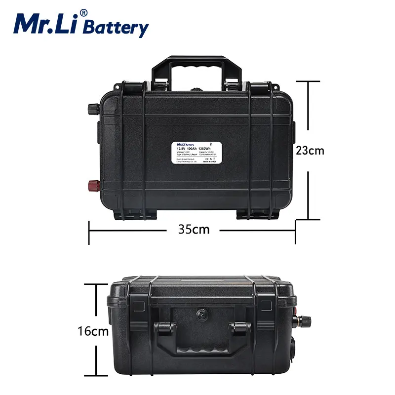 Купить Mr.Li Waterproof 12.8V 100Ah LiFePO4 Battery Pack Built-in Bluetooth BMS for Solar RV EV with Charger за 20650рублей