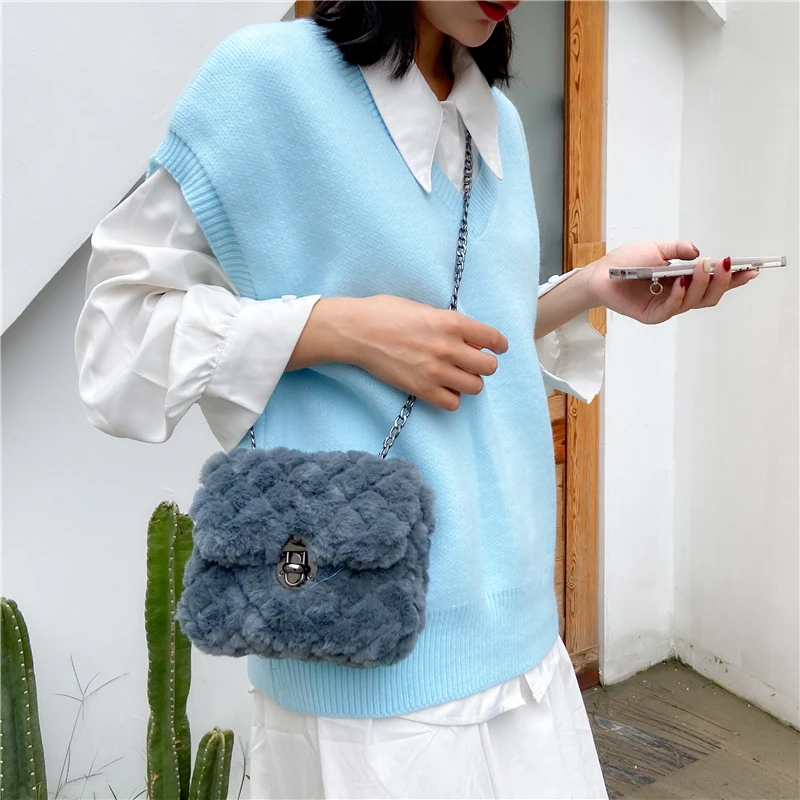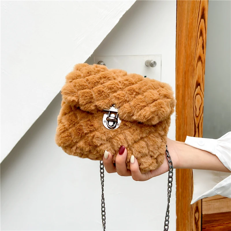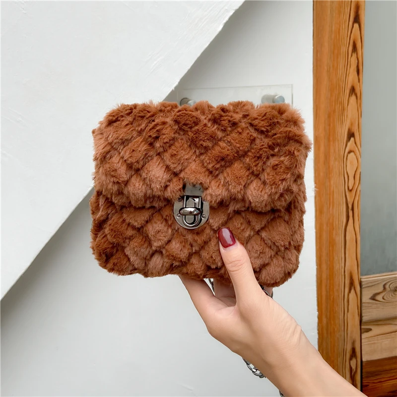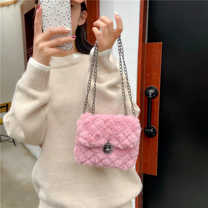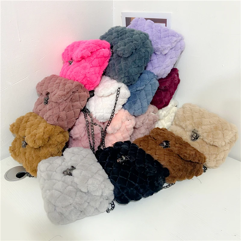Купить Multicolor Fake Fur Square Chain Women's Shoulder Bag Fashion Designer Handbag Luxury Brand Cross-Body Bag Ladies Messenger Bag за 600рублей