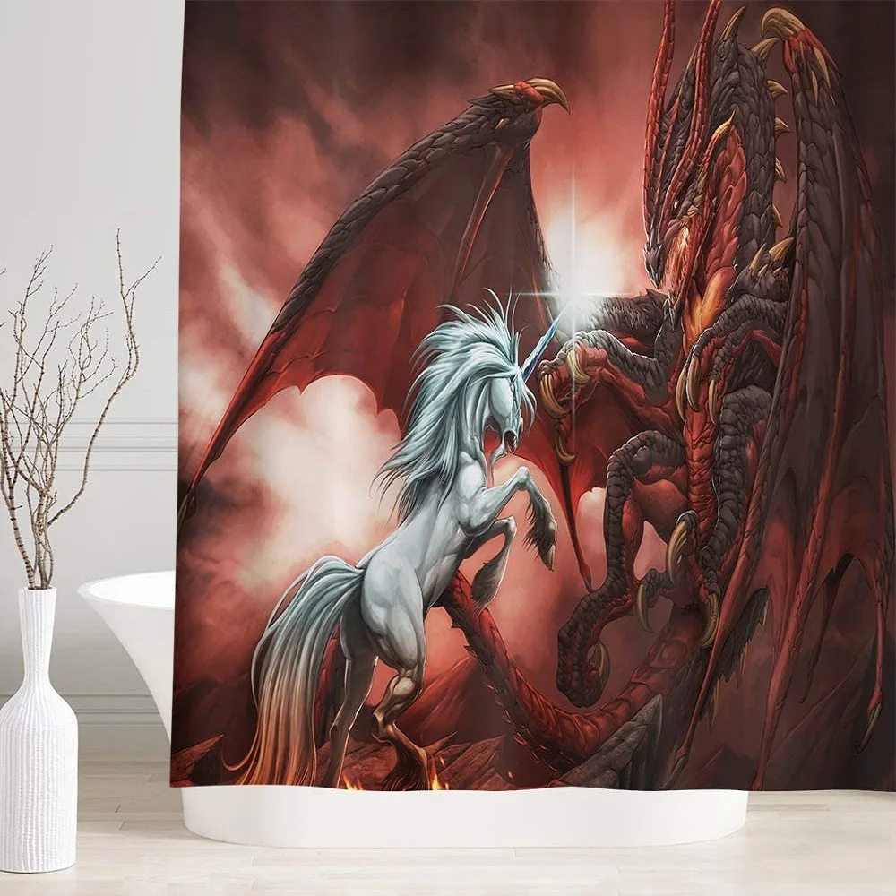 Купить Mystic Dragon Shower Curtain, Mythical Creature Unicorn with Fly Dragon Fight Bathtub Screen, Bathroom Home Decor with Hooks за 550рублей