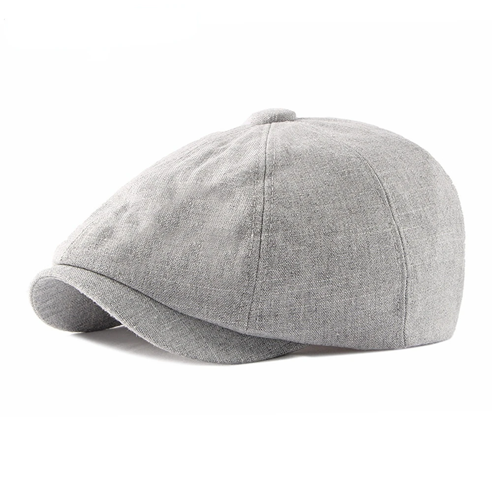Купить NEWSBOY Cap Linen Hats For Men Women Beret Hat Spring Summer Dark Gray Eight Panel Hat British Style Retro Octagonal Cap за 500рублей