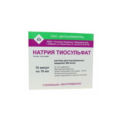 Натрия тиосульфат-Дарница раствор д/ин . 300 мг/мл по 5 мл №10 в амп . Дарница, ФФ, ЧАО . от 42 .15 грн . найдено в 11016 аптеках . Цены в аптеках . Натрия тиосульфат-Биолек раствор д/ин . 30 % по 5 мл №10 в амп . . .