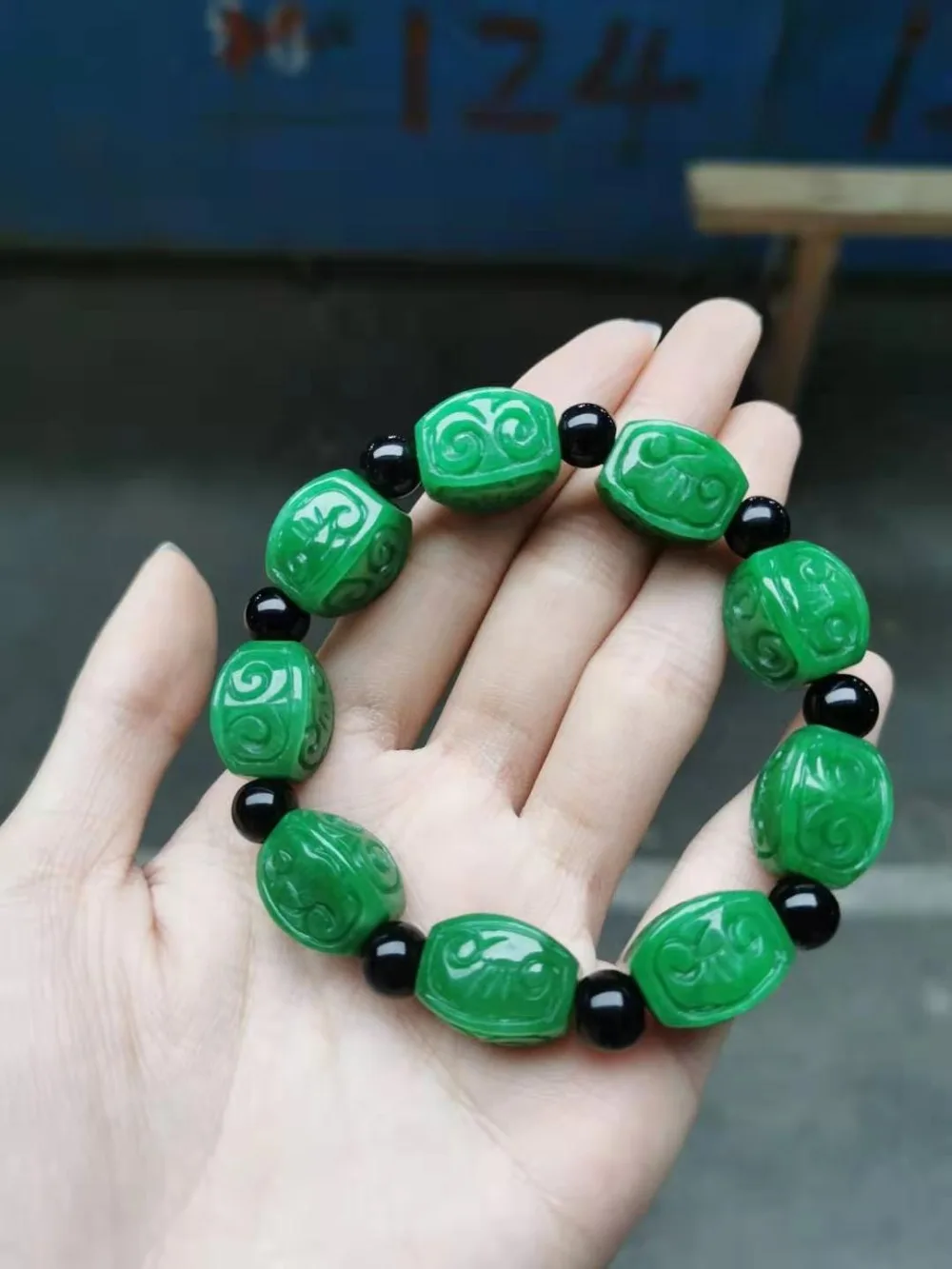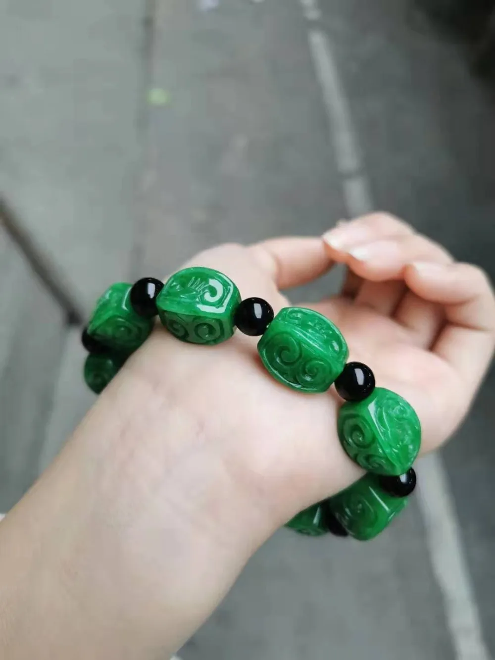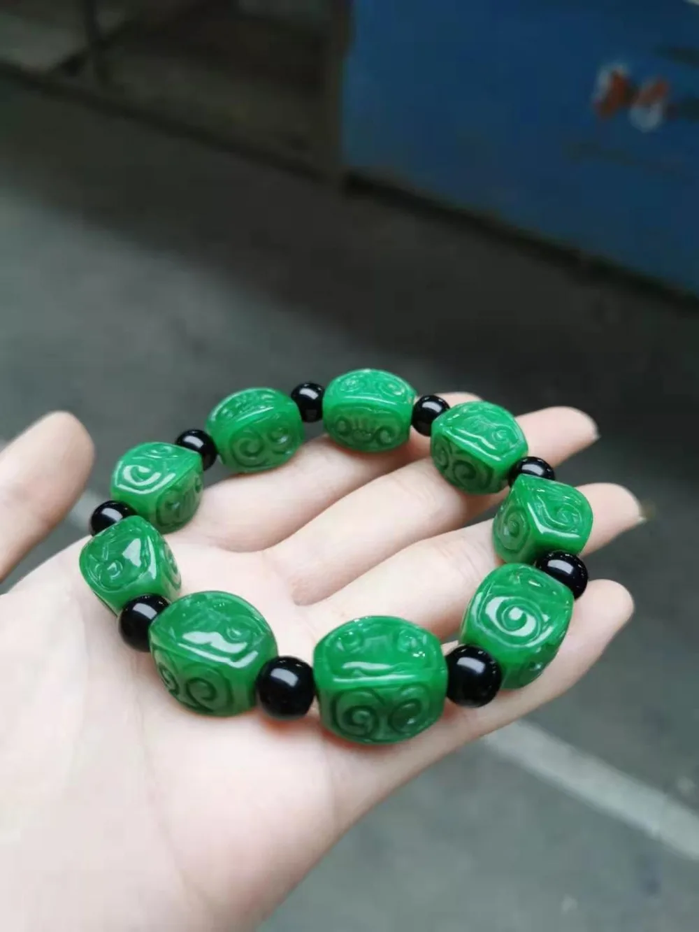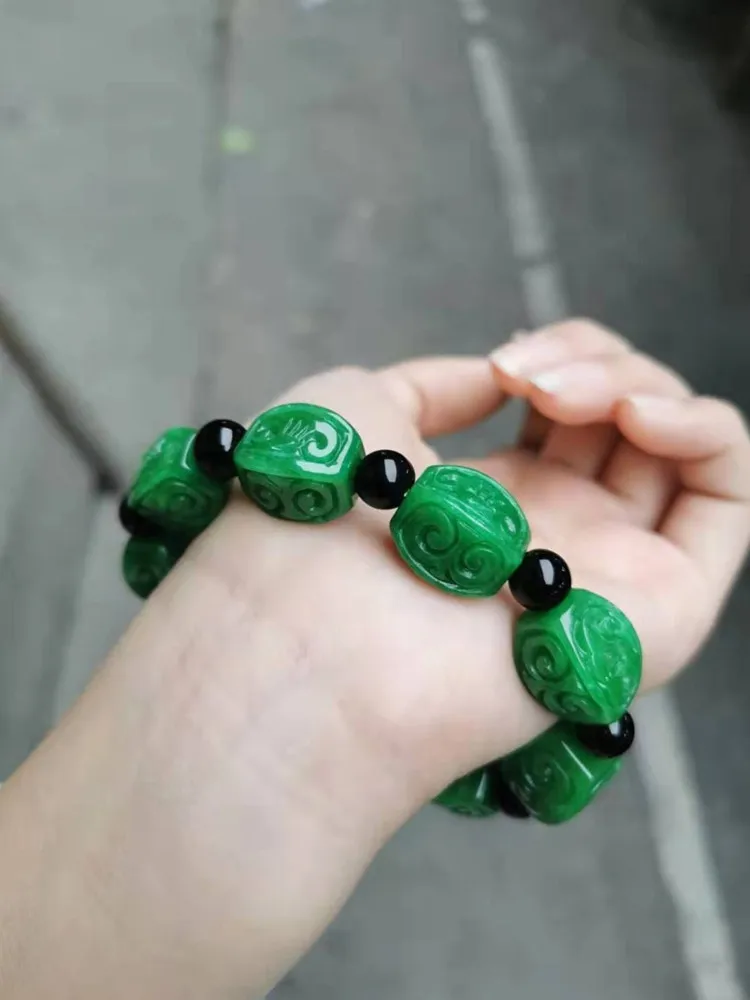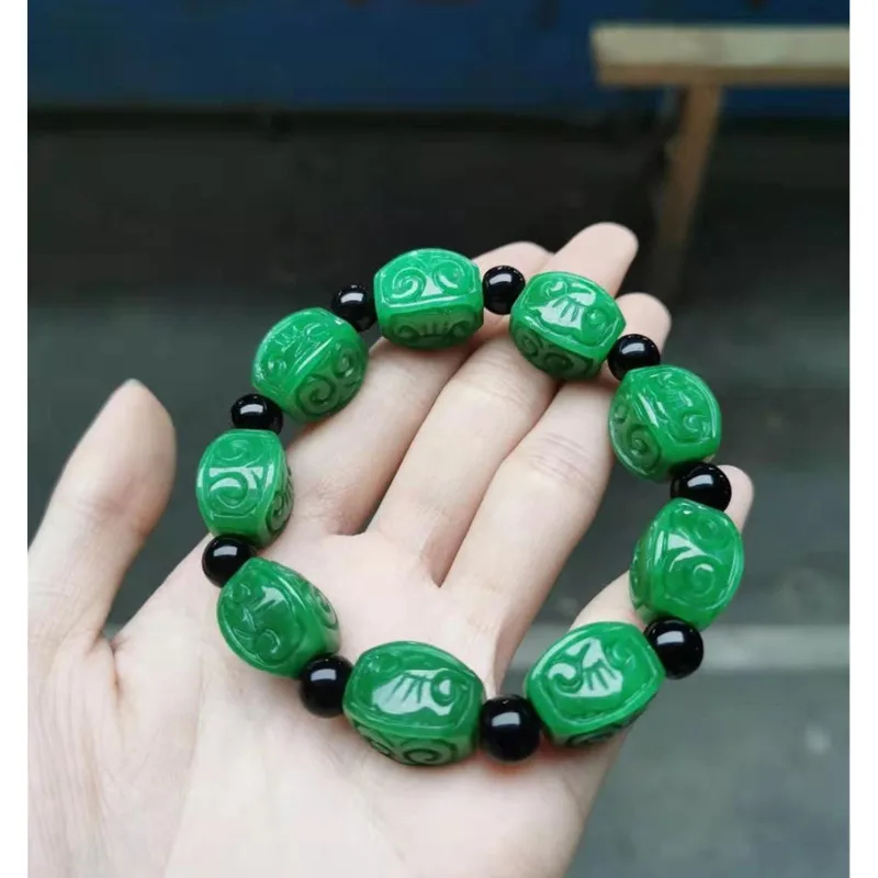 Купить Natural Chinese Auspicious Clouds Wishful Patterns Green Bracelets Handcarved Flower Beads Prayer Emerald Jade Bangles Jewellery за 1450рублей