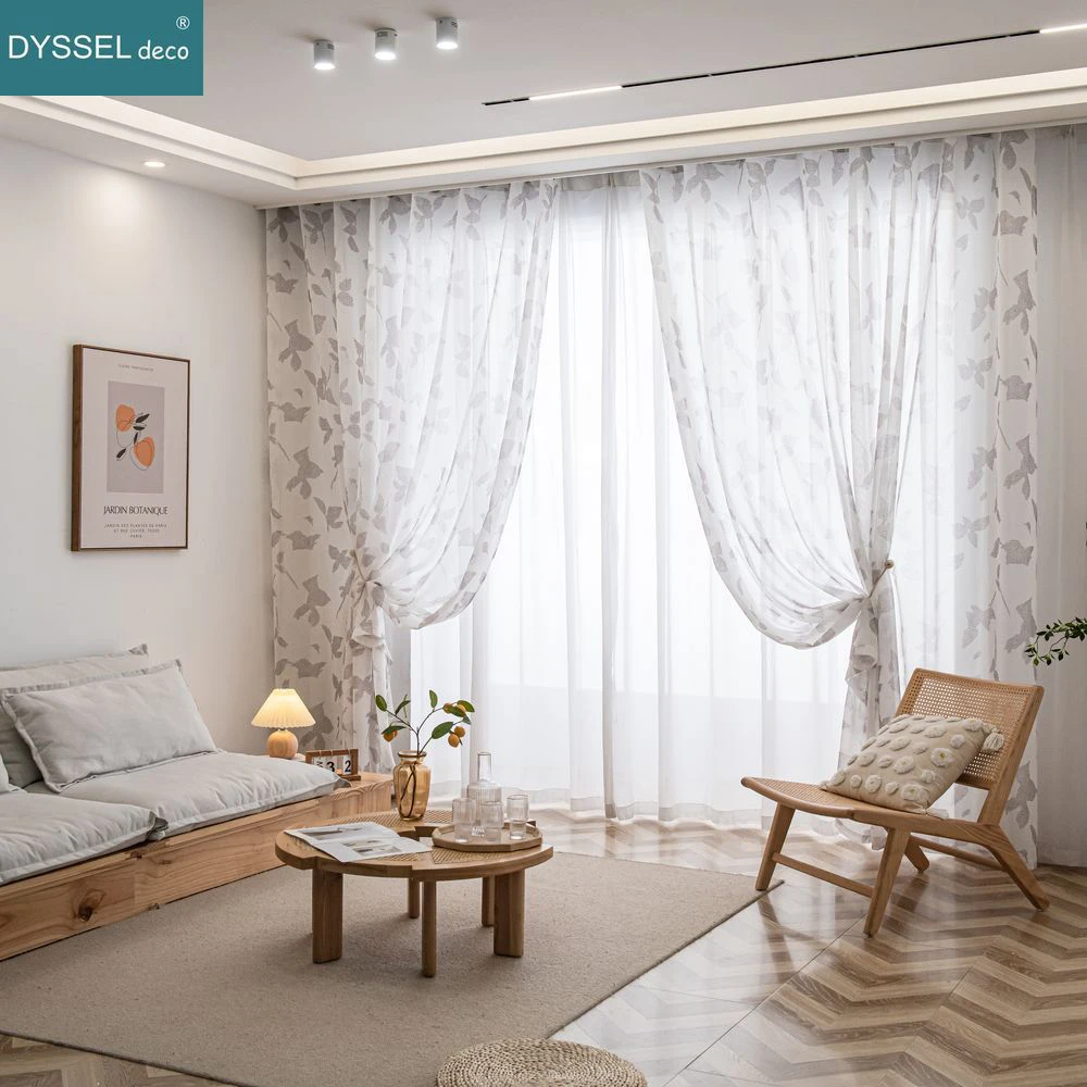 Купить Natural Printed Sheer Curtains Linen Textured for Living Room Maple Leaf Design Farmhouse Style Window Panel Drapes Grommet Top за 550рублей
