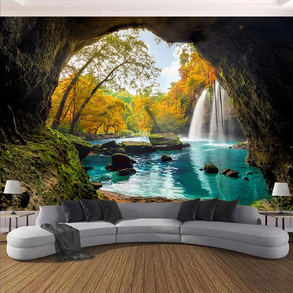 Купить Nature Forest Tapestry Hippie Large Beautiful Landscape Tree Waterfall Wall Hanging Bohemian Mandala Tapestry Psy Backdrop Decor за 250рублей