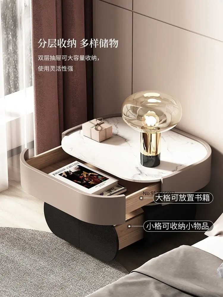 Купить Net red nightstands advanced light luxury 2022 new round solid wood rock panel simple modern INS wind free installation за 13600рублей