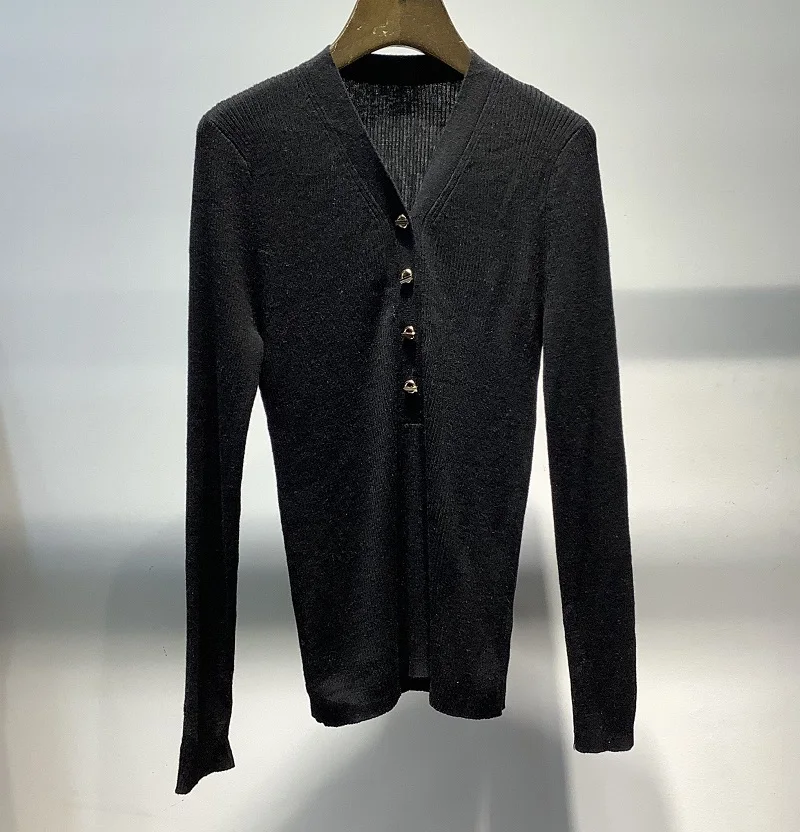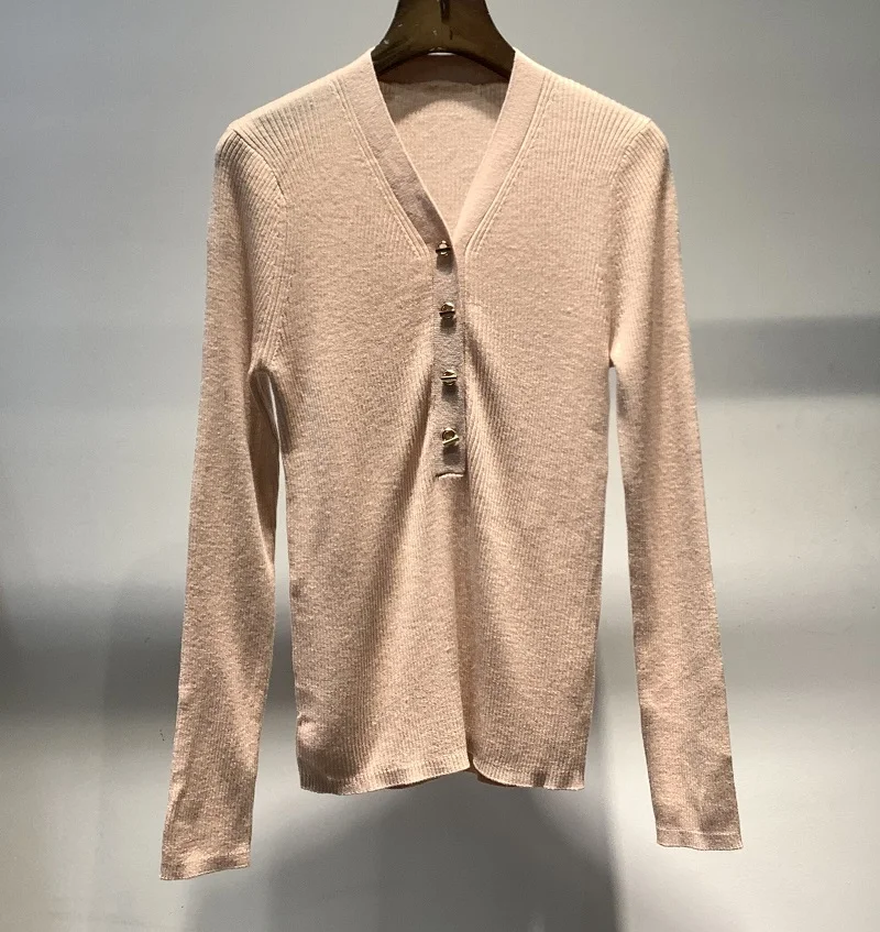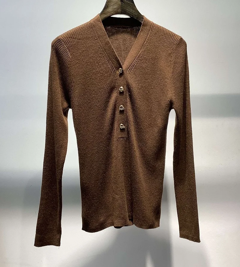 Купить New 2022 Autumn Winter Pullovers & Sweaters High Quality Ladies V-Neck Beading Button Deco Long Sleeve Casual Basic Wool Jumpers за 2350рублей