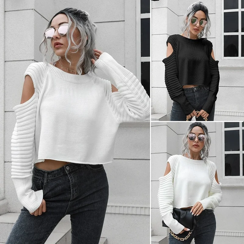 Купить New 2023 Winter Elegant Women's Sweater Sexy Strapless Knitted Pullovers Female Casual Solid Tops Outwear 여성 반팔 니트 за 1000рублей