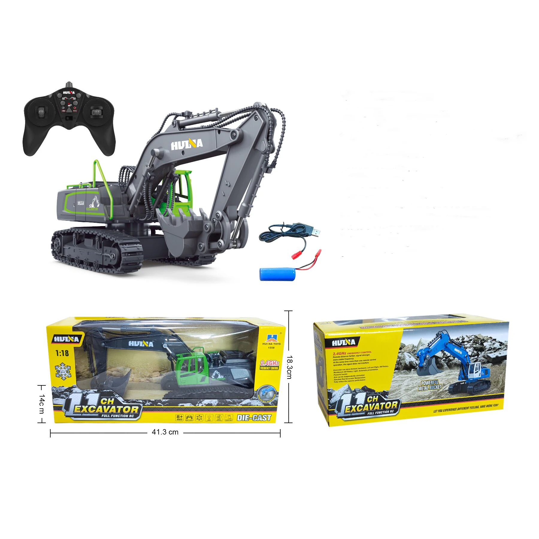 Купить New Arrival Toy HUINA 1/18 Truck RC Excavator 1558 Model Blue Grey Color Ready to Run Remote Control Car for Children Gifts за 1200рублей