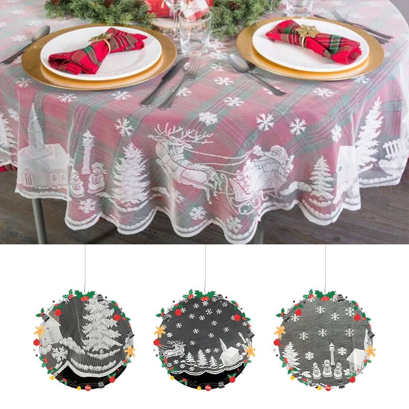 Купить New Christmas Tablecloth White Lace Decorative Home Table Skirt Simple Santa Snowman Elk Netting Print Tablecloth Table Flag за 550рублей