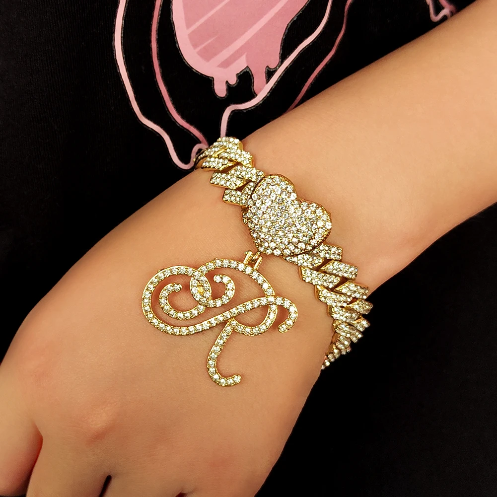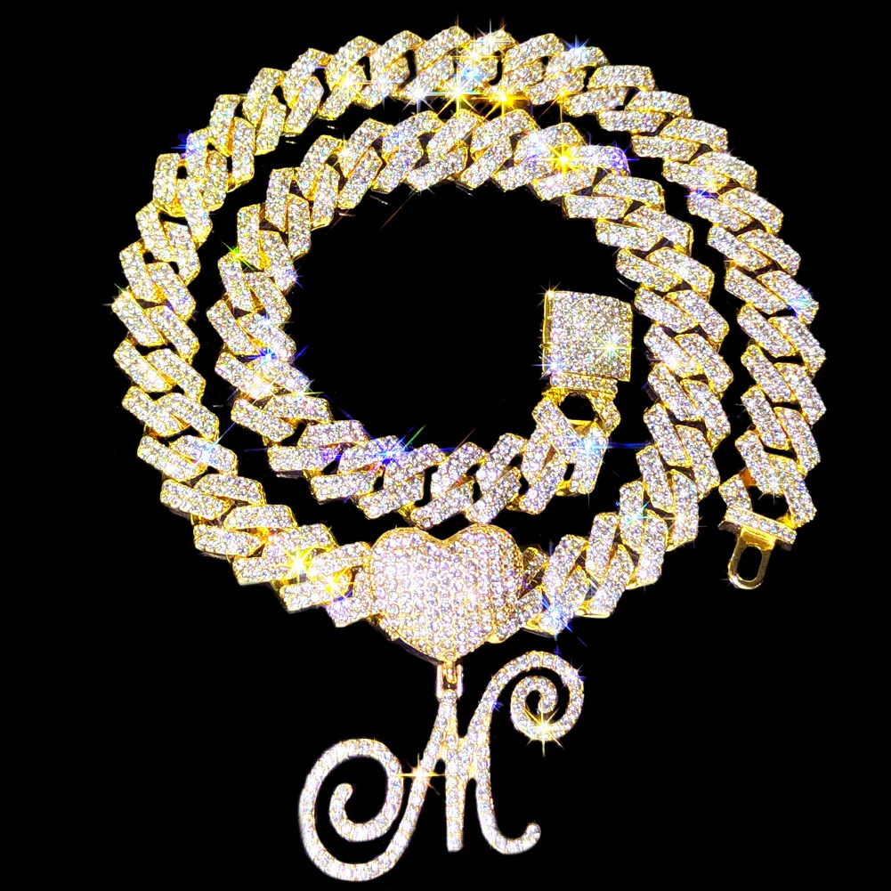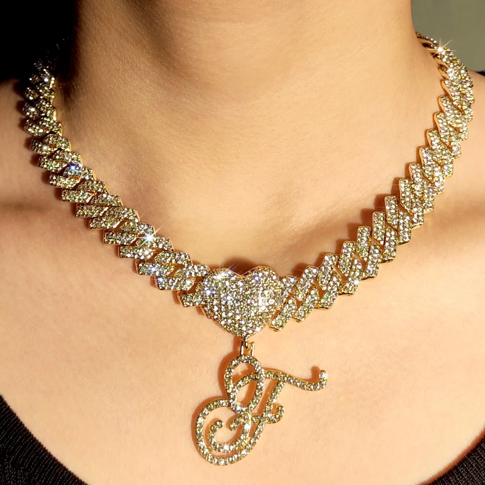Купить New Fashion A-Z Initial Cursive Letter Pendant Cuban Necklace for Women Iced Out Cuban Link Chain Necklace Set Hip Hop Jewelry за 500рублей