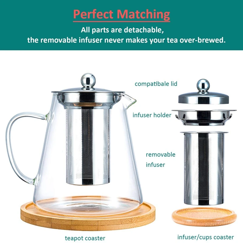Купить New Glass Teapot with Stainless Steel Removable Infuser for Loose Leaf Tea, Bonus Tea Kettle & Infuser Coaster, 950Ml за 450рублей