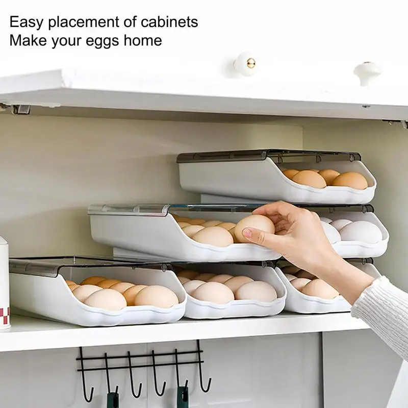 Купить New High-quality Automatic Rolling Egg Storage Rack Stackable Design Egg Tray Containers Refrigerator Fresh Box Kitchen Tools за 300рублей