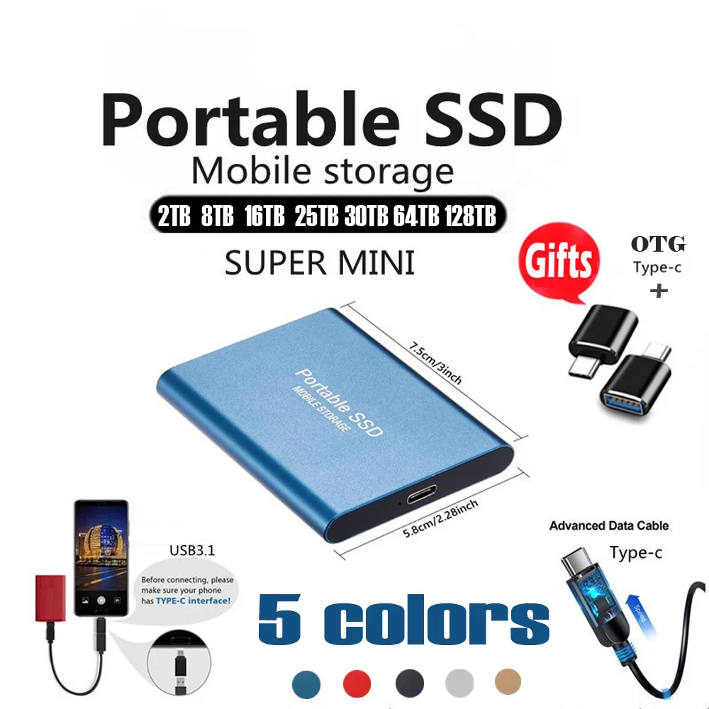 Купить New Portable High Speed Mobile Solid State Drive 1/2/8/16/64TB SSD Mobile Hard Drives External Storage Decives for Laptop mac за 600рублей