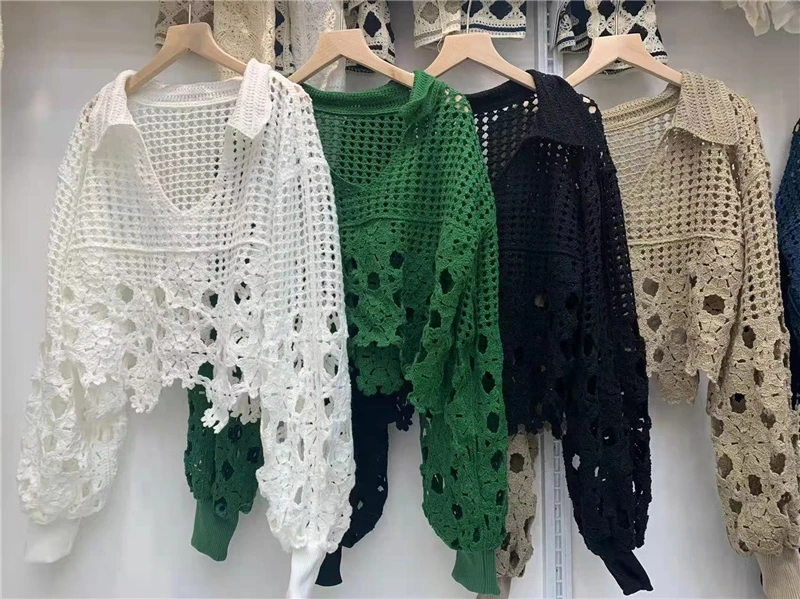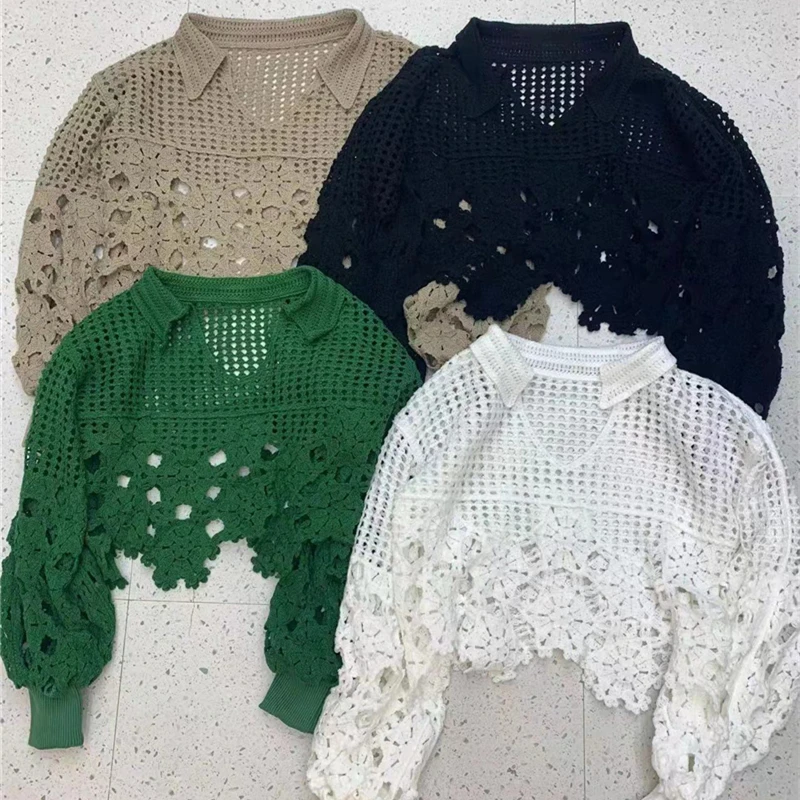 Купить New Short Tops Spring Autumn Knitted Korean Fashion Jumpers Women 2021 Hollow Out Irregular Sweater Pullovers за 1150рублей