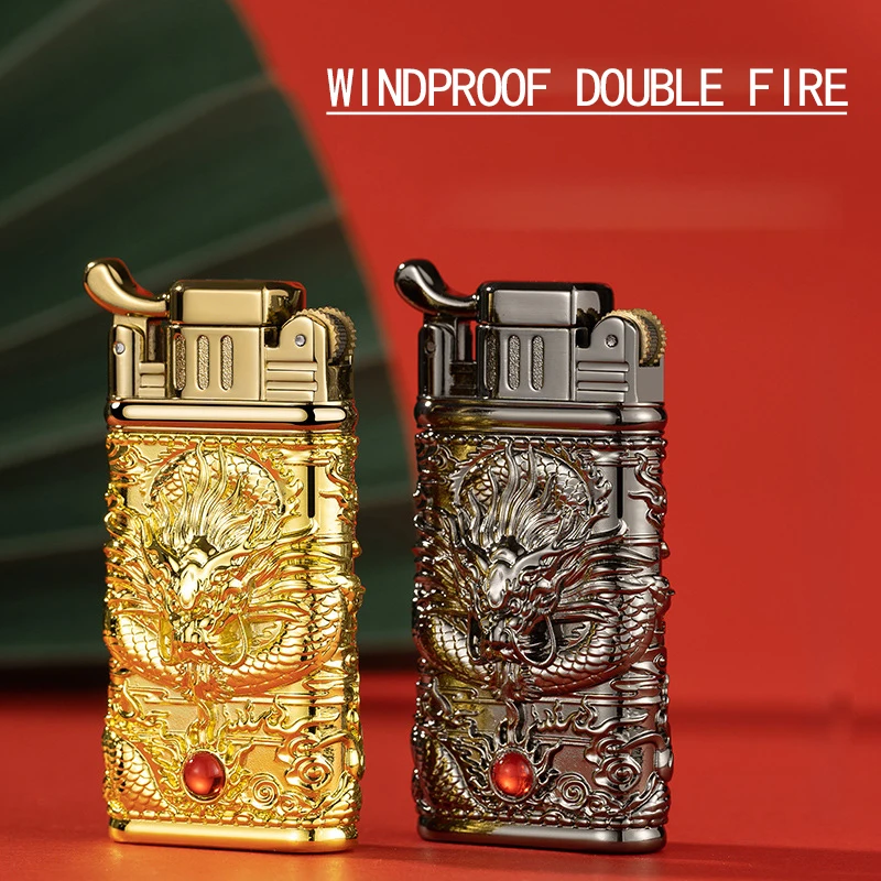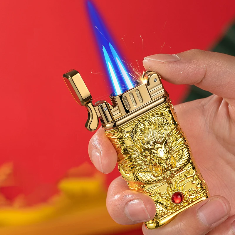 Купить New Windproof Double Jet Torch Lighter Gas Cigar Cigarette Refill Lighter Creative Embossed Dragon Metal Grinding Lighter Gift за 450рублей