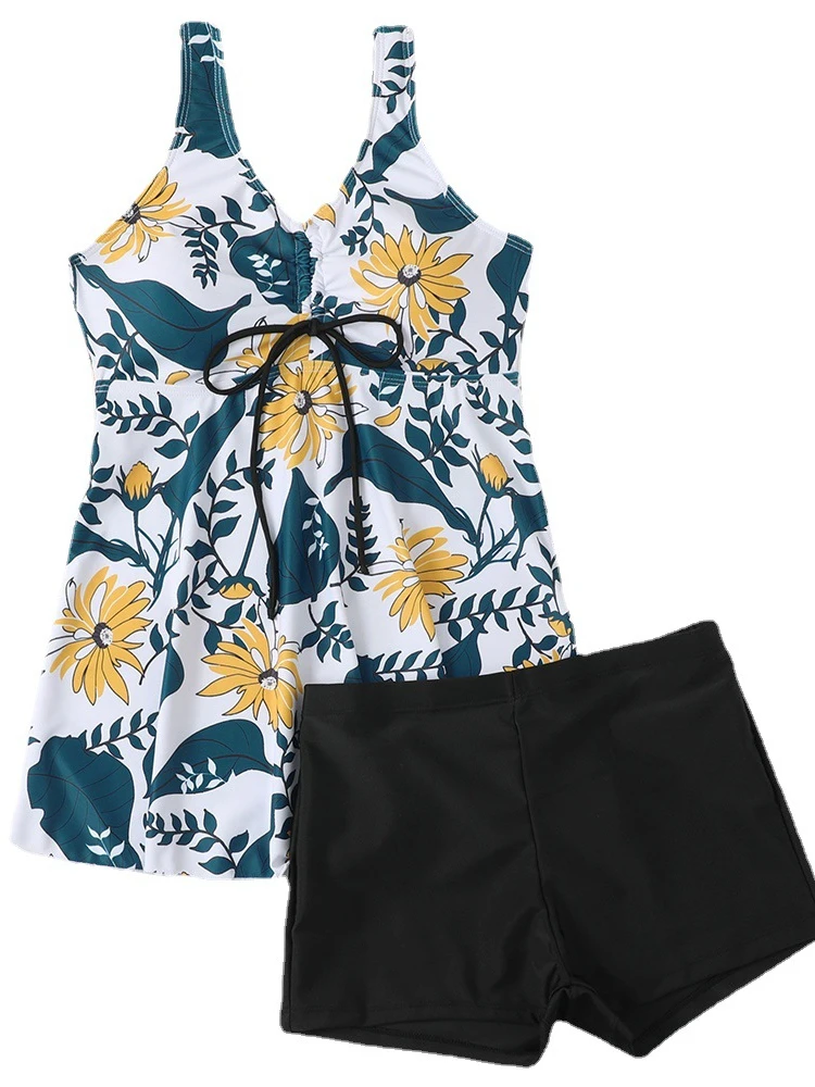 Купить New Women Floral Print Two-Piece Swimsuit Sexy Tankini Set with Trunk Female 2022 Summer Brazilian Beach Bathing Suits Swimwear за 700рублей