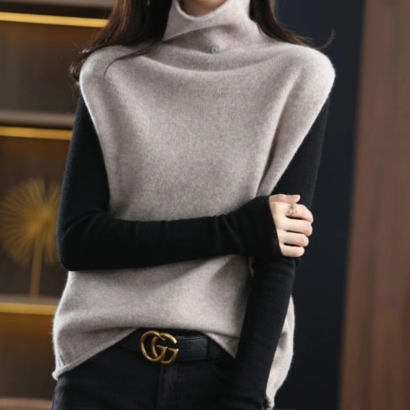 Купить New Women's Clothing 2022 Wool Turtleneck Sweater Vest Spring Autumn Loose Knit Sleeveless Pullover Female Soft Vest Waistcoat за 850рублей