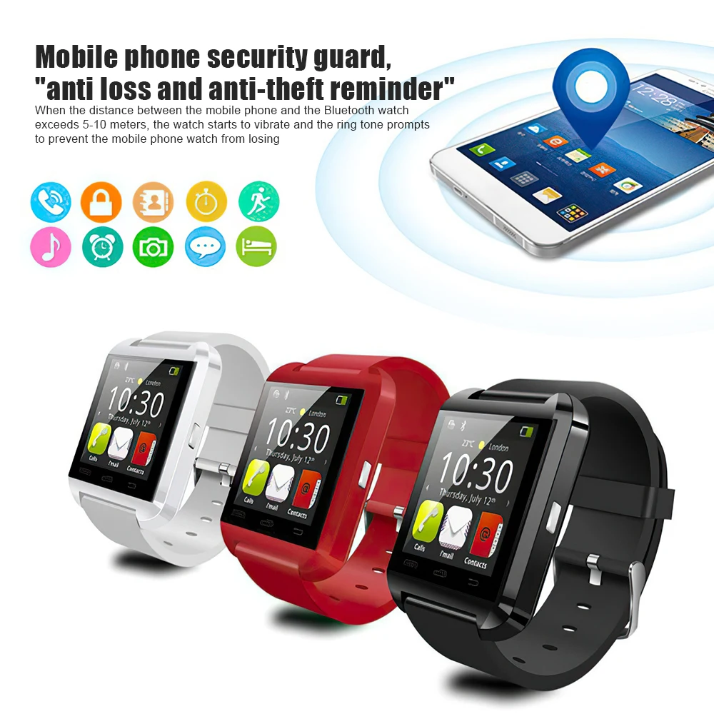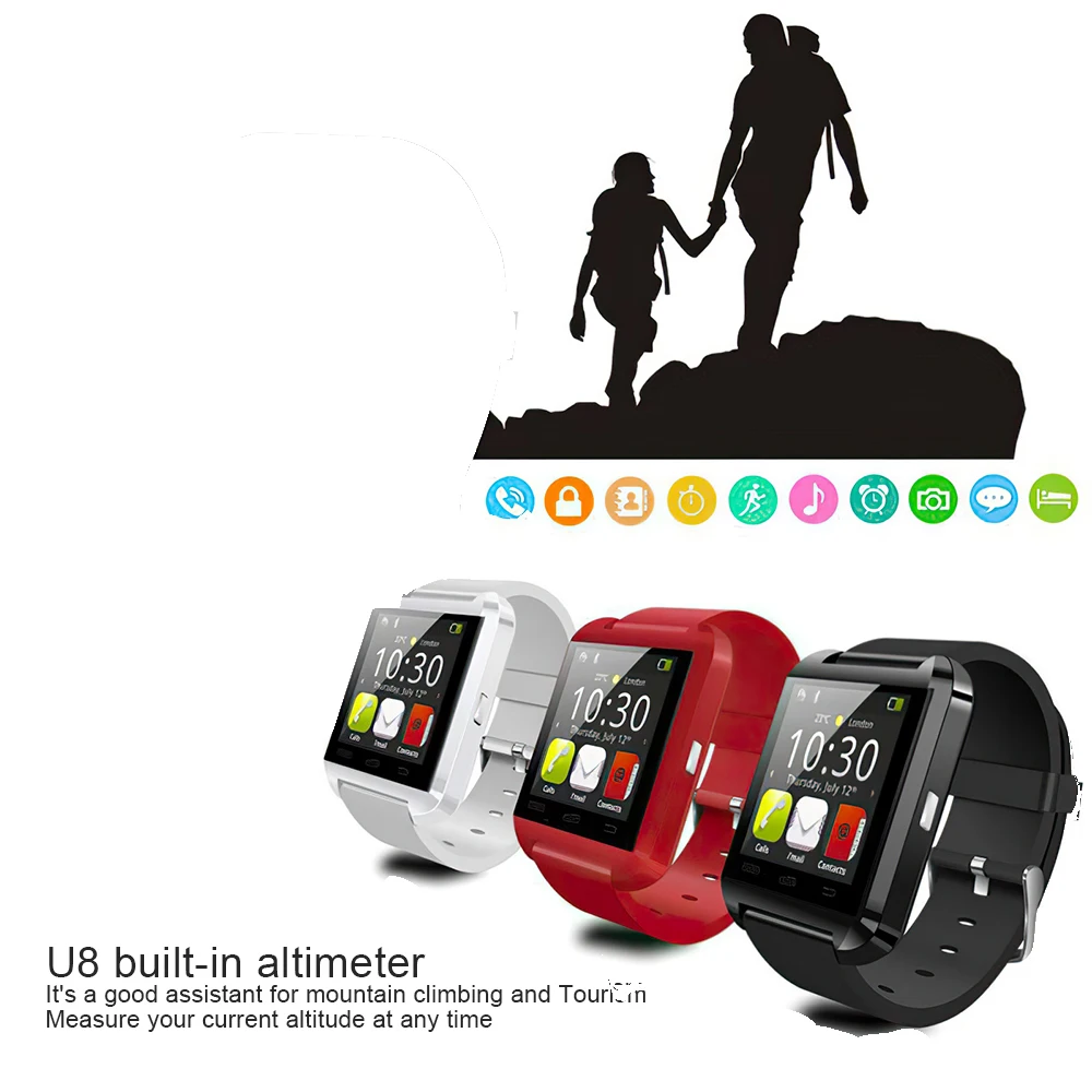 Купить New bluetooth U8 smart watch sports men and women the clock information remind movement step gauge watch Android Reloj Inteligen за 350рублей