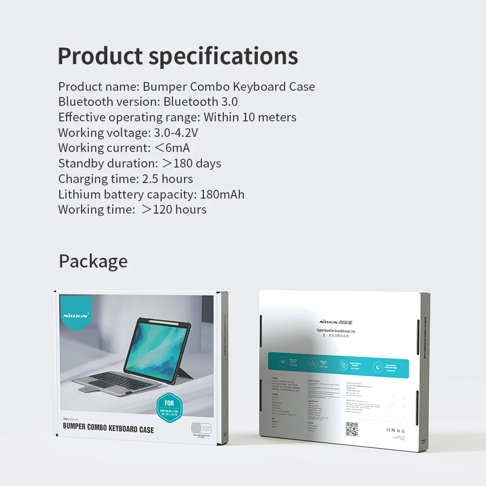 Купить Nillkin Bumper Combo Keyboard Case for Samsung Galaxy Tab S8+ / S7+, 3in1 Back Cover with Bluetooth Keyboard за 3200рублей