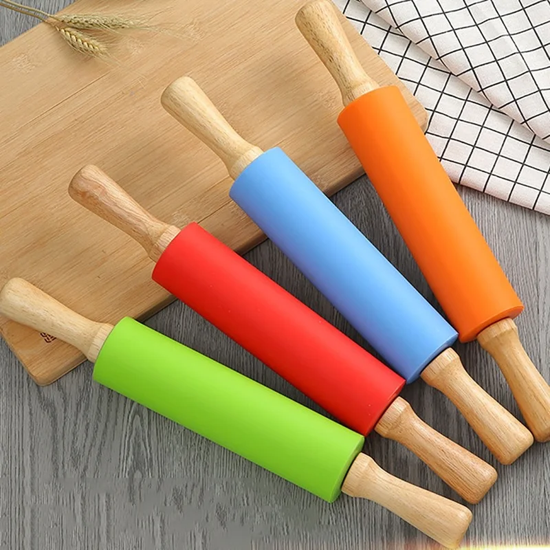Купить Non-Stick Silicone Rolling Pin Wooden Handle 360° Rotatable Cake Fondant Baking Cookie Flour Roller for Kitchen Baking Tools за 350рублей