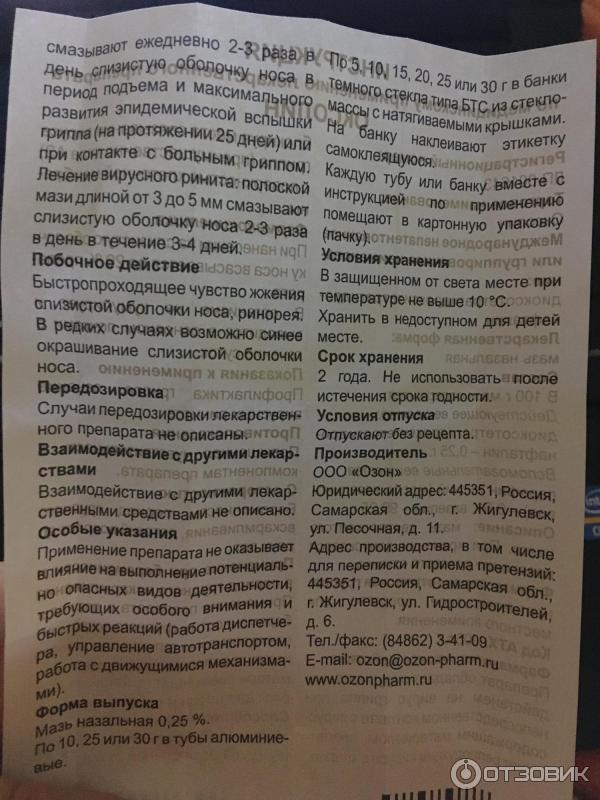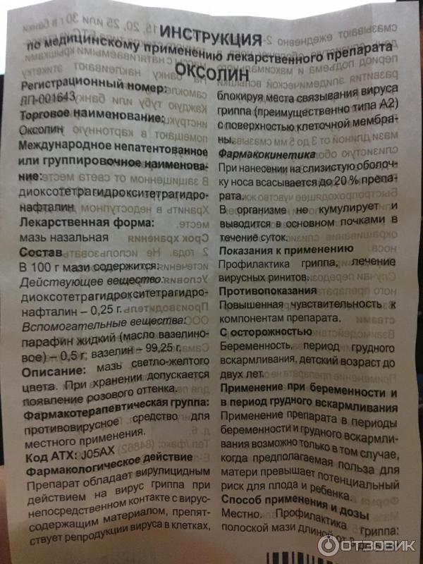 Оксолин (Oxolinum), инструкция, мазь назальная, 0 .25% . . .