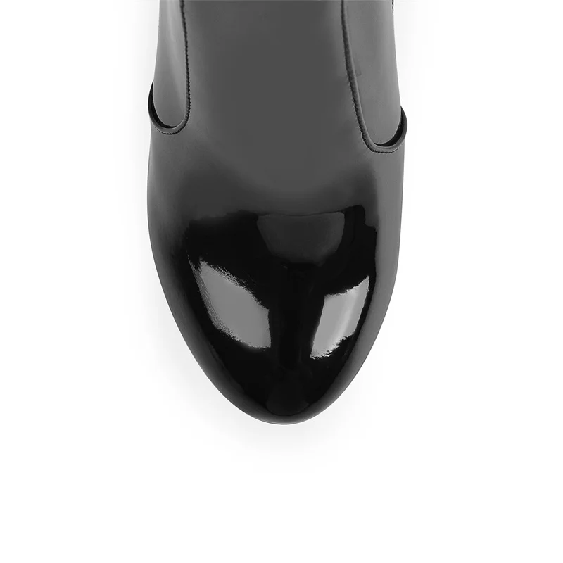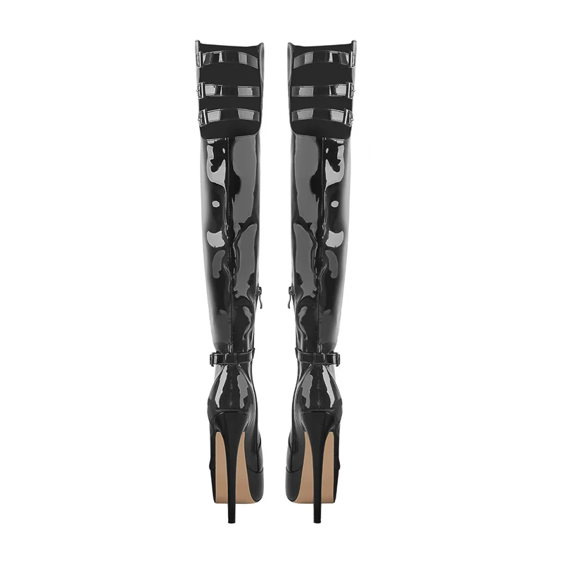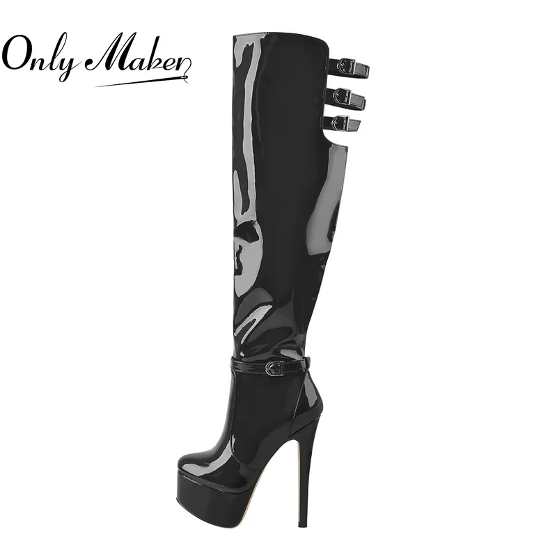 Купить Onlymaker Thin High Heel Boots Platform Over The Knee Patent Leather Inner Short Plush Buckle Hollow Side Zipper Winter Boots за 3500рублей