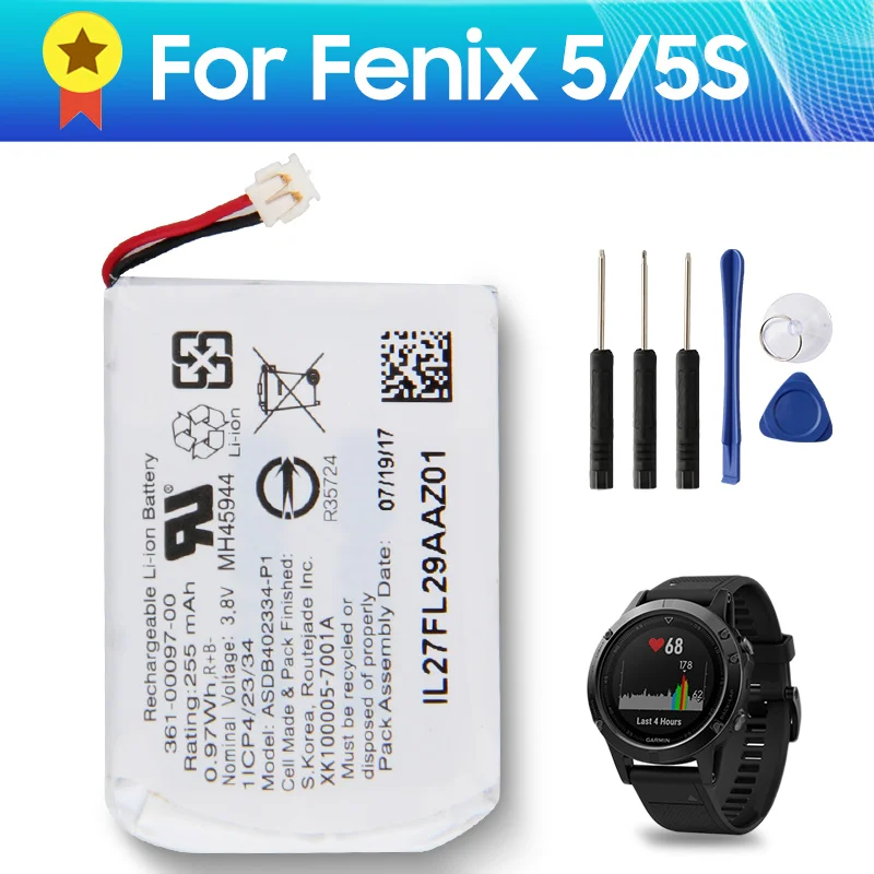 Купить Original Replacement Battery Fenix 6 361-00096-00 361-00097-00 361-00098-00 for Garmin Fenix5 Fenix 5S 5X Durable Battery 255mAh за 500рублей