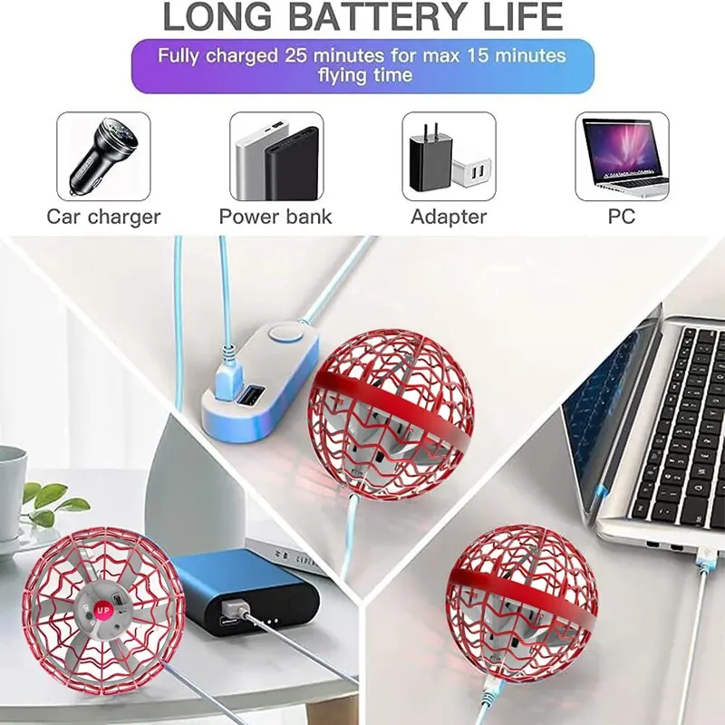 Купить Original Spinning Ball Hand Control Magic Ball with LED Light Boomerang Spinner Mini Drone Flying Toys Christmas Gift for Kids за 400рублей